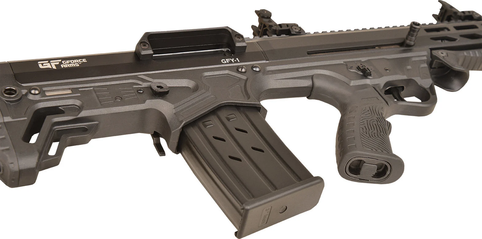The GFY-1 is a short and handy Shotgun in the classic bullpup configuration (action and magazine behind the trigger). Bullpup shotguns accommodate a longer barrel without adding unnecessary length, and allow you to hold the weapon closer to your body. At only 2 inches longer than the Mossberg 590 Shockwave, The 28.5-inch GFY-1 is ideal for the narrow corridors of home defense and tactical use.