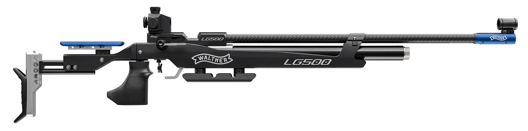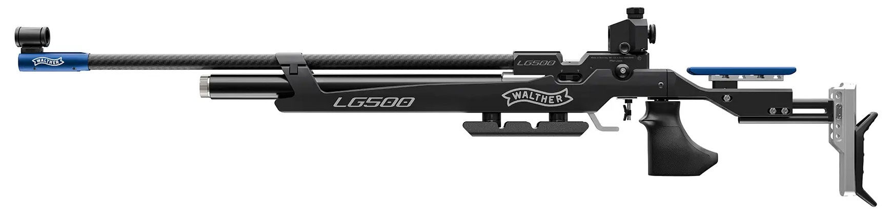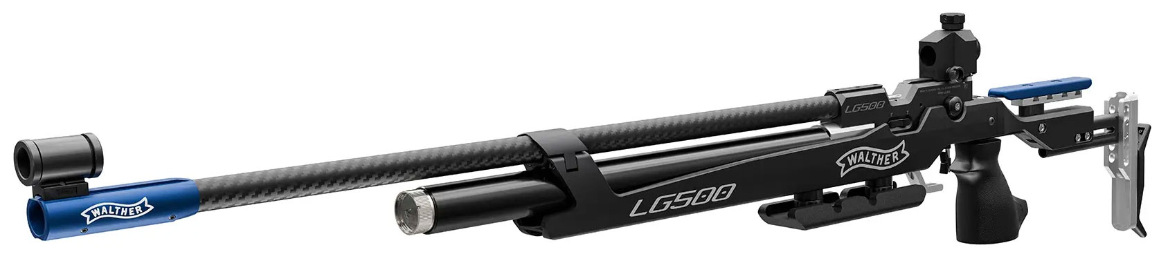 The LG500 Blacktec impresses with high-quality components such as the carbon barrel sleeve and numerous adjustment options, making it the ideal rifle for youth- and club sports. The trigger is mechanically finely adjustable, and the optimized loading bay and Walther Balancing System guarantee intuitive handling and a weapon that just fits!